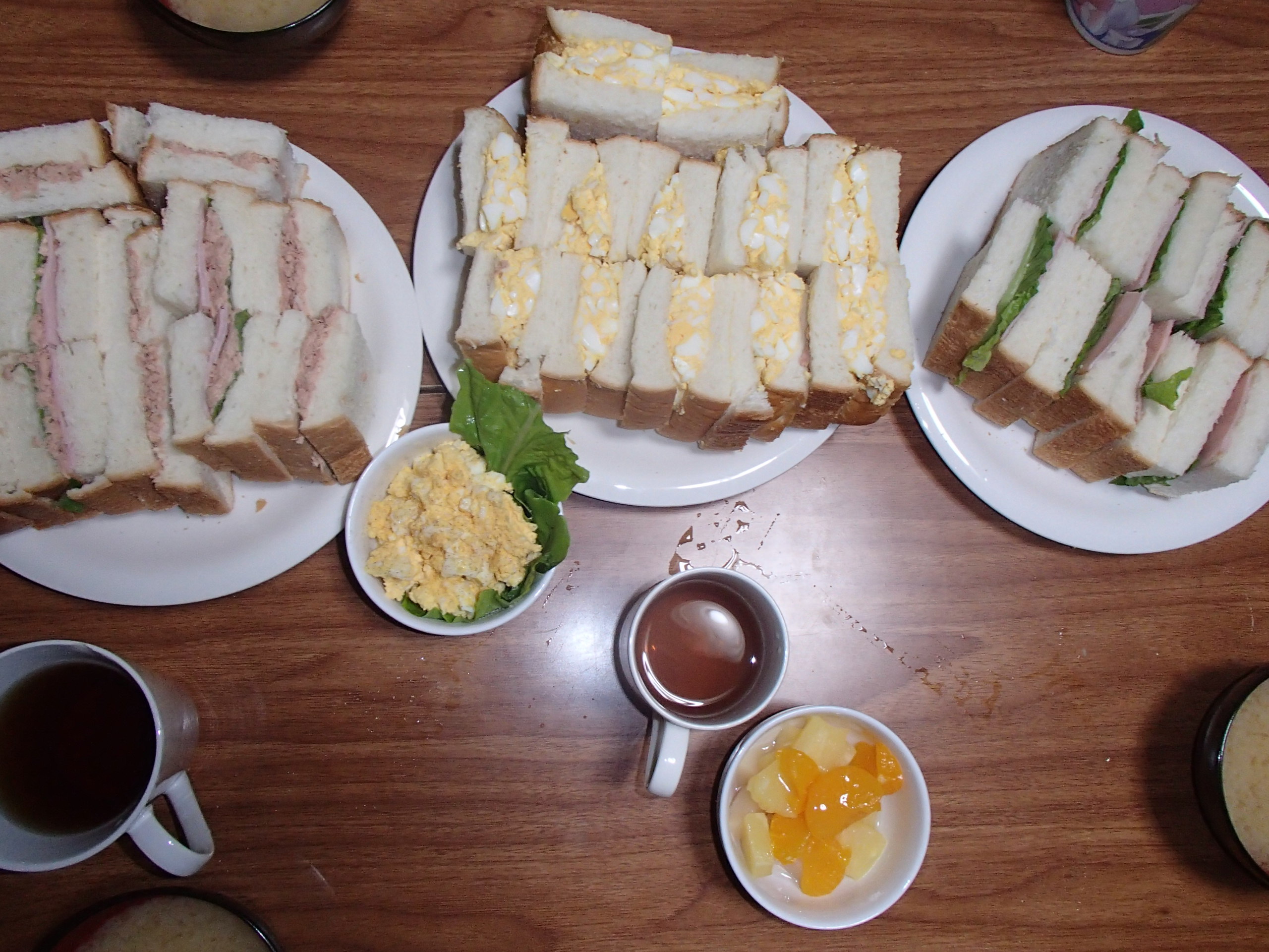 あっちゃん、母(あかね)特製のサンドウィッチ、味噌汁、フルーツです☆