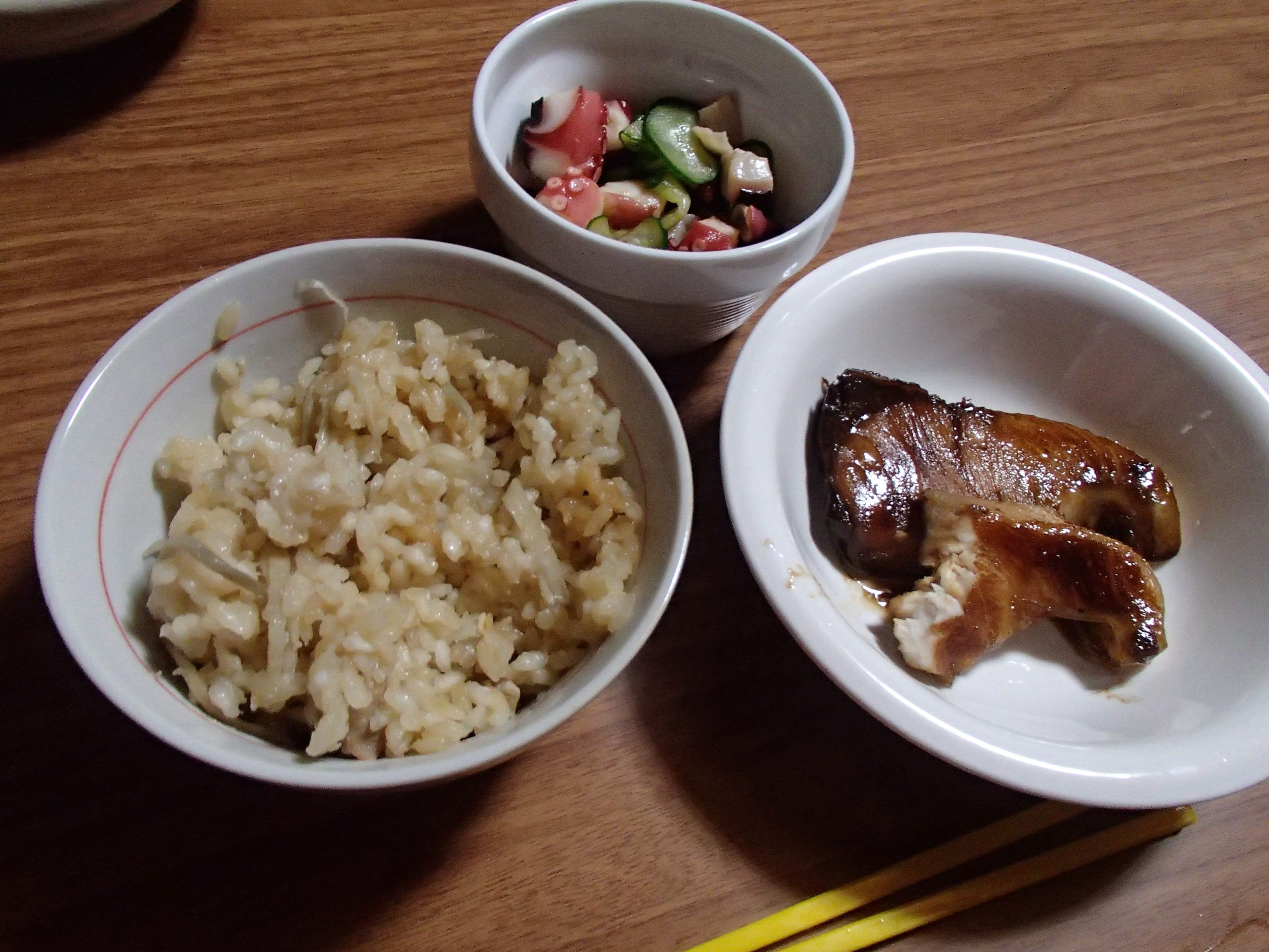 ブリの照り焼きと炊き込みご飯とタコの酢の物!!!
