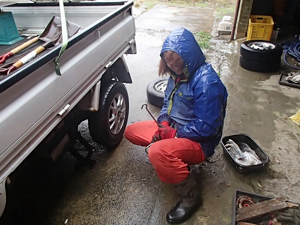 次に、軽トラのタイヤ交換を進んで行ってくれたしょうた君!