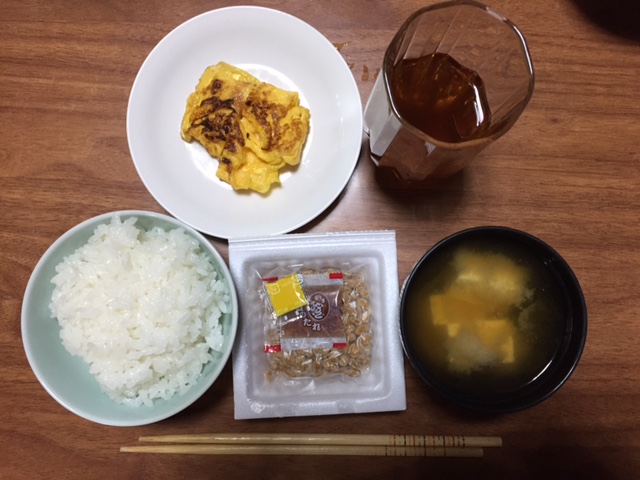 メニューは卵焼き(タカさん担当)、お味噌汁(ティーナ担当)、納豆、白米です。